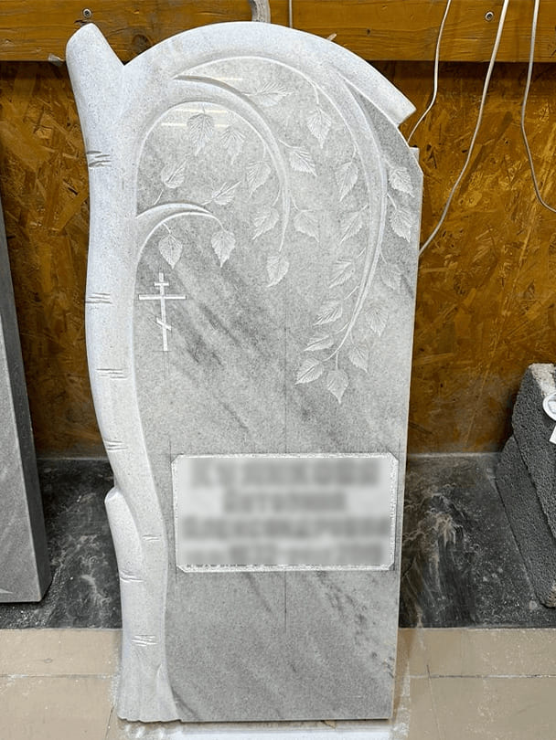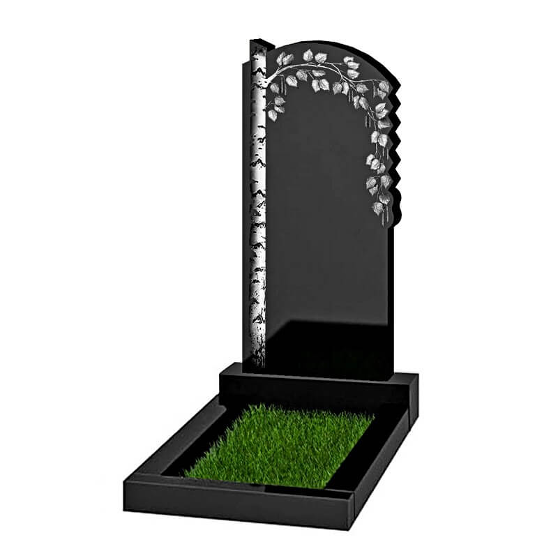 Памятник вертикальный с деревом, с двусторонней или пятисторонней полировкой (отполированная поверхность камня гладкая и блестит, вот почему памятник, отполированный со всех сторон, меньше подвержен разрушению и дольше выглядит как новый). Для его изготовления использовано сырьё высокого качества.