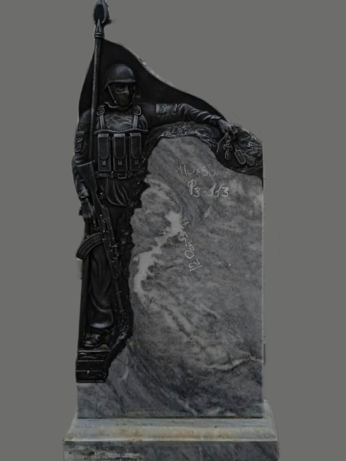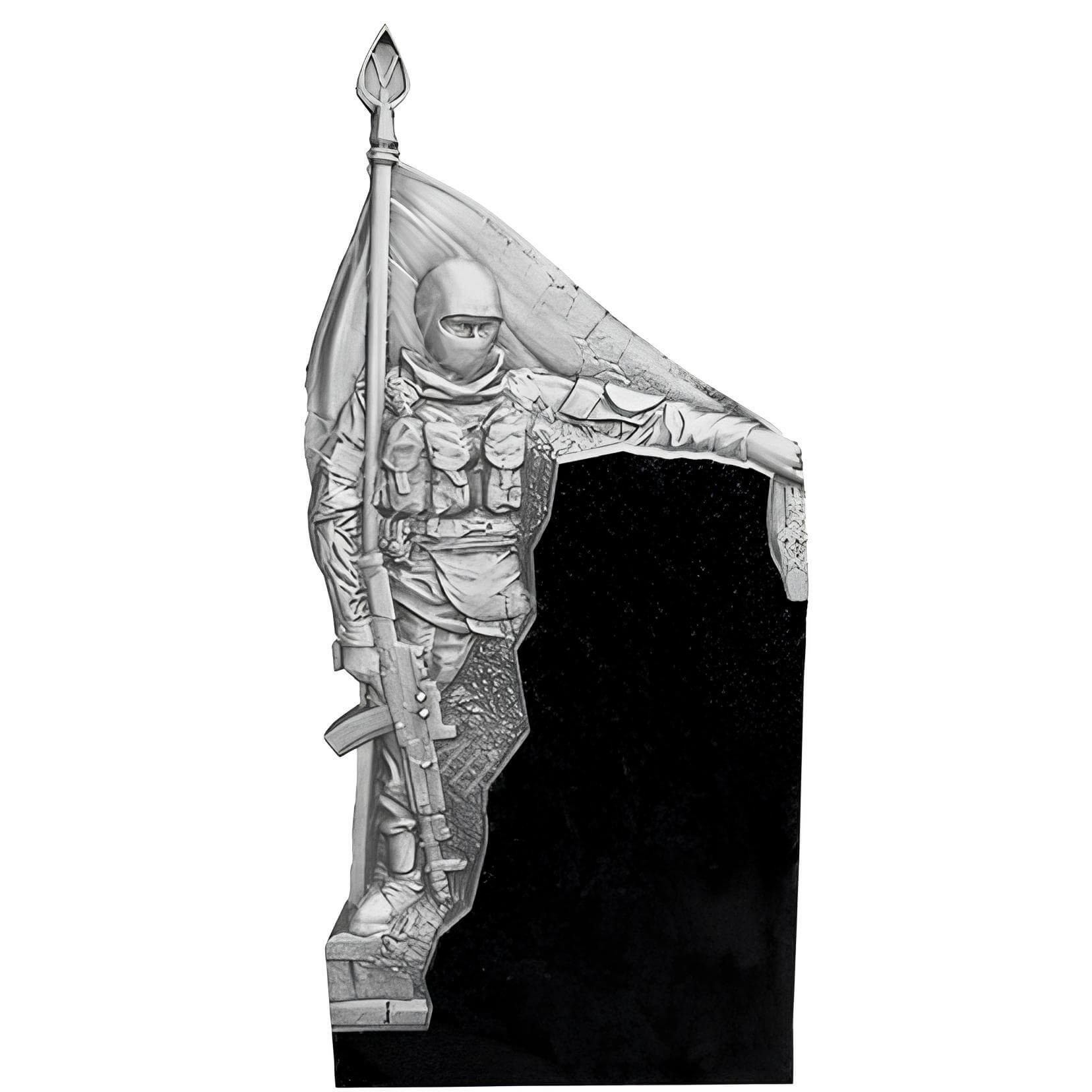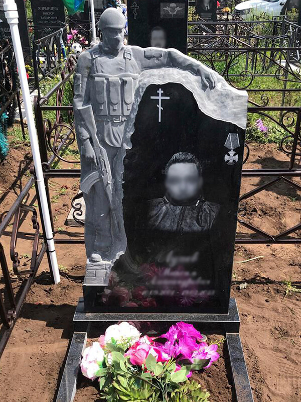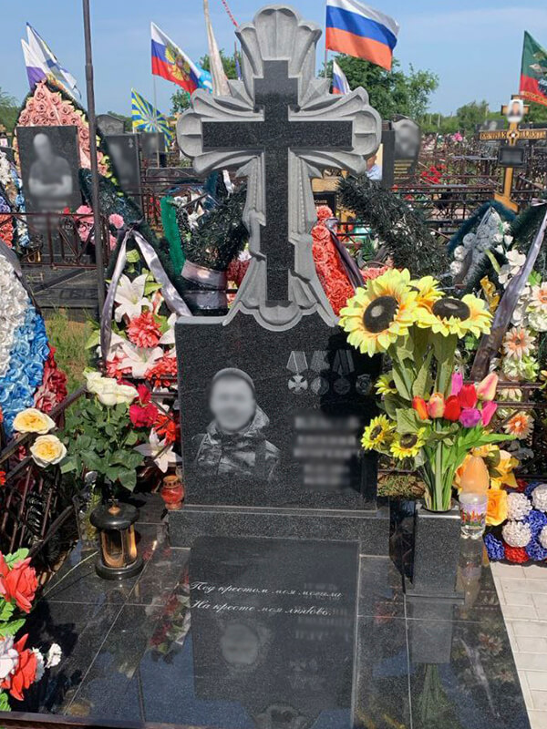 Памятник для военных с двусторонней полировкой (отполированная поверхность камня гладкая и блестит, вот почему памятник, отполированный со всех сторон, меньше подвержен разрушению и дольше выглядит как новый). Для его изготовления использовано сырьё высокого качества.